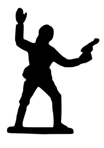 Keywords: soldier pistol gun armed silhouette wave sign black uniform military toy