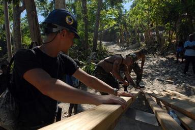 Keywords: Soldiers Help During Aftermath of Hurricanes DVIDS118425.jpg en Seabees and Air Force engineers deployed with the amphibious assault ship USS Kearsarge reconstruct a water pipeline that was destroyed by recent hurricanes Service members from the Navy Army Air Force Marines and Coast Guard along with medical personnel from the U S Public Health Service Canadian army Air Force and Navy Brazil Project HOPE and International Aid embarked aboard Kearsarge are working together to conduct hurricane relief operations in Haiti 2008-09-24 https //www dvidshub net/image/118425 080924-N-+++++-281 2008-09-27 08 59 BAINET HT PD-USGov-Military-Navy USS Kearsarge LHD-3 Images from DoD uploaded by Fæ |