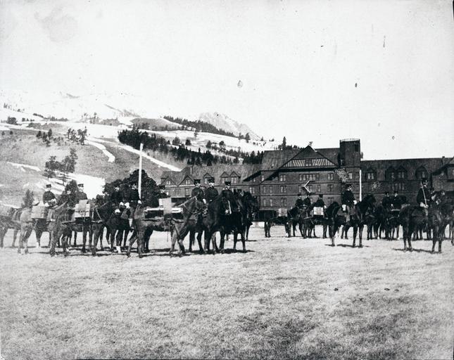 Keywords: no. 65329 no65329 machine gun machinegun military personnel militarypersonnel horses mammoth fort yellowstone fortyellowstone black and white blackandwhite national hotel nationalhotel outdoor black and white Soldiers on horses in front of National Hotel at Mammoth; Photographer unknown; C1910; Catalog #02992; YELL 36930-2 Soldiers on horses in front of National Hotel at Mammoth; Photographer unknown; C1910; Catalog #02992; YELL 36930-2 |