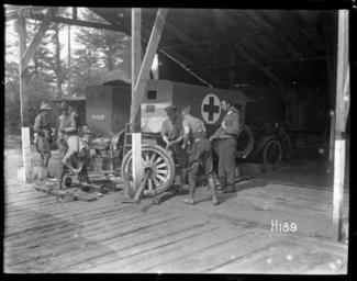 Keywords: blackandwhite monochrome black and white Photograph of soldiers working to repair the wheel of a hospital vehicle in a workshop during World War I, taken on 3 August 1917 by Henry Armytage Sanders. Inscriptions: Inscribed - Photographer's title on negative -bottom right: H189. Quantity: 1 b&w original negative(s). Physical Description: Glass negative Soldiers repairing a wheel from a hospital vehicle during World War I. Royal New Zealand Returned and Services' Association :New Zealand official negatives, World War 1914-1918. Ref: 1/2-012889-G. Alexander Turnbull Library, Wellington, New Zealand. natlib.govt.nz/records/22815547 Photograph of soldiers working to repair the wheel of a hospital vehicle in a workshop during World War I, taken on 3 August 1917 by Henry Armytage Sanders. Inscriptions: Inscribed - Photographer's title on negative -bottom right: H189. Quantity: 1 b&w original negative(s). Physical Description: Glass negative Soldiers repairing a wheel from a hospital vehicle during World War I. Royal New Zealand Returned and Services' Association :New Zealand official negatives, World War 1914-1918. Ref: 1/2-012889-G. Alexander Turnbull Library, Wellington, New Zealand. natlib.govt.nz/records/22815547 |