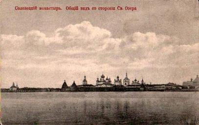 Keywords: Solovki4.jpg ru Соловецкий монасты ь Общий вид со сто оны Св Озе а http //www ivki ru/kapustin/town/solovki01 htm Author before 1917 PD-RusEmpire Solovki on postcards of Russian Empire Overall view of Solovetsky Monastery