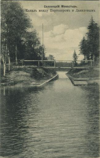 Keywords: Solovki Postcard 03.jpg ru Соловецкий монасты ь Канал между Пе тозе ом и Даниловым https //fotki yandex ru/users/fotosergs/album/152094/ p 1 Author before 1917 PD-RusEmpire Solovki on postcards of Russian Empire Lake and canal system of the Solovetsky monastery
