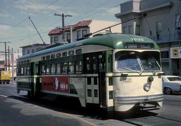 Keywords: san francisco sanfrancisco vehicle outdoor car road MUNI PCC 1032, a J CHURCH EAST BAY TERMINAL on Church St. waiting to wye and go downtown, San Francisco, CA on August 25, 1967. MUNI PCC 1032, a J CHURCH EAST BAY TERMINAL on Church St. waiting to wye and go downtown, San Francisco, CA on August 25, 1967. |