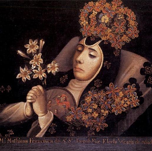 | Keywords: Sor Matiana Francisca del Señor San José.jpg Mexico c 1720 Oil on canvas Institution Museo Nacional del Virreinato http //elpais com/diario/2005/04/16/babelia/1113606369_740215 html other versions PD-old-100 18th-century unidentified painters Museo Nacional del Virreinato Tepotzotlán Crowned Nuns Mexican colonial portraits 18th-century portrait paintings in Mexico Catafalque portraits | ||||