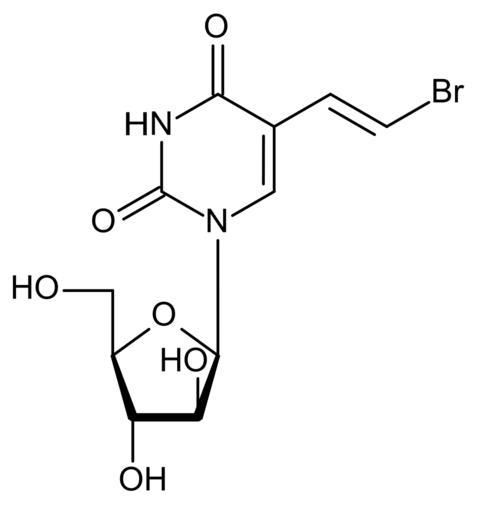 Keywords: Sorivudin.svg Sorivudin 5- E -2-Bromoethenyl- 1- 2R 3S 4S 5R -3 4-dihydroxy- 5- hydroxymethyl oxolan-2-yl pyrimidin-2 4-dion Own 2007-12-22 Felix Hennersdorf Hennix hennix GFDL Cc-by-sa-3 0-migrated Pyrimidine nucleosides Pyrimidinediones Antivirals