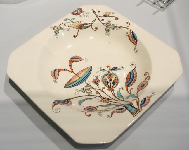 Keywords: Soup Plate in Persia Pattern, Christopher Dresser (1834-1904), made by Old Hall Earthenware Co. (1862-1887), Stoke-on-Trent, Hanley, England, glazed earthenware - Brooklyn Museum - Brooklyn, NY - DSC08871.JPG en Exhibit in the Brooklyn Museum - Brooklyn New York USA This artwork is in the public domain because the artist died more than 70 years ago Photography was permitted in the museum without restriction 2013-10-30 13 01 04 own Daderot other versions cc-zero English pottery in the Brooklyn Museum Uploaded with UploadWizard Christopher Dresser |