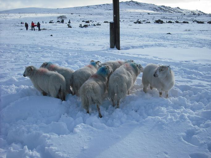 | Keywords: Sourton snowfall 7 February 2009 6.JPG A picture taken on Dartmoor near Sourton about 4 miles 6 km south-west of Okehampton showing a group of sheep huddling together for warmth It shows the heavy snowfall that covered much of Devon on 6 February 2009 Sourton Tor is shown in the background to the right and Shelstone Tor to the left Sheep farmers on Dartmoor can let their sheep roam around freely without enclosed fields The farmers therefore mark their sheep with paint such as the blue and red paint seen on the sheeps' necks so they know which sheep belong to which farmer Own 2009-02-07 Jolly Janner 50 42 3 N 4 3 50 W February 2009 Great Britain and Ireland snowfall Tors of Dartmoor Sheep in Dartmoor Snow in Dartmoor Sourton |
