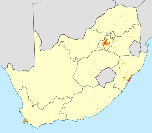 | Keywords: South Africa 2011 Indian or Asian population density map.svg ffffcc <1 person/km² ffeda0 1 “3 people/km² fed976 3 “10 people/km² feb24c 10 “30 people/km² fd8d3c 30 “100 people/km² fc4e2a 100 “300 people/km² e31a1c 300 “1000 people/km² bc0026 1000 “3000 people/km² 800026 >3000 people/km² Projection is Albers Equal-Area Conic with standard parallels at 25 5° S and 31 5° S and origin at 28 5° S 25 5° E Statistics South Africa's Census 2011 is the source of the basic population data The map results from my own processing of the data For ward boundaries see File South Africa electoral wards 2011 blank svg Htonl 2013-04-16 Demographic maps of South Africa Maps with Albers projection Maps by Htonl The following license applies to the population data on which the map is based http //www statssa gov za/copyrightdisclaimer asp the user acknowledges Stats SA as the source of the basic data wherever they process apply utilise publish or distribute the data and also that they specify that the relevant application and analysis where applicable result from their own processing of the data The following applies to the map itself |