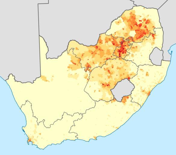 | Keywords: South Africa 2011 Sotho-Tswana speakers density map.svg ffffcc <1 speaker/km² ffeda0 1 “3 speakers/km² fed976 3 “10 speakers/km² feb24c 10 “30 speakers/km² fd8d3c 30 “100 speakers/km² fc4e2a 100 “300 speakers/km² e31a1c 300 “1000 speakers/km² bc0026 1000 “3000 speakers/km² 800026 >3000 speakers/km² Projection is Albers Equal-Area Conic with standard parallels at 25 5° S and 31 5° S and origin at 28 5° S 25 5° E Statistics South Africa's Census 2011 is the source of the basic population data The map results from my own processing of the data For ward boundaries see File South Africa electoral wards 2011 blank svg Htonl 2013-09-05 Linguistic maps of South Africa Maps with Albers projection Maps by Htonl The following license applies to the population data on which the map is based http //www statssa gov za/copyrightdisclaimer asp the user acknowledges Stats SA as the source of the basic data wherever they process apply utilise publish or distribute the data and also that they specify that the relevant application and analysis where applicable result from their own processing of the data The following applies to the map itself |