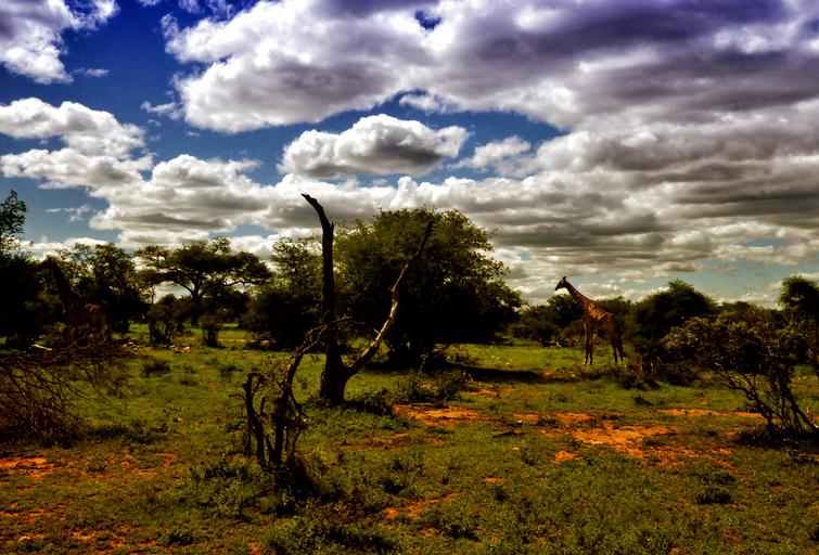 Keywords: south africa landscape cloud giraffes savannah