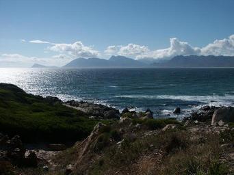 Keywords: south africa western cape hawston coast sea bay gulf of finland sea indian ocean mountains landscape coastal landscape nature paradise water clouds garden route back light high contrast
