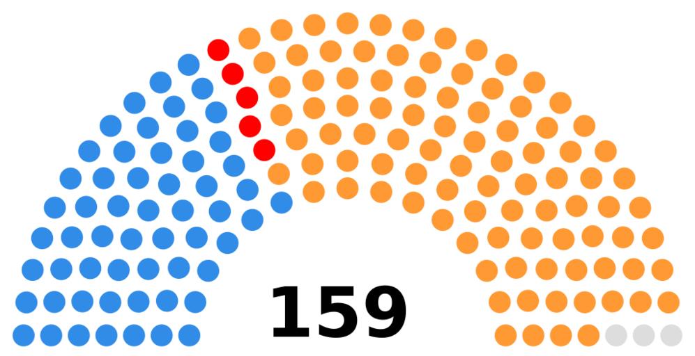 Keywords: South African House of Assembly 1953.svg 318CE7 United Party 57 seats FF0000 Labour Party 5 seats FF9933 National Party 94 seats DDDDDD Independent 3 seats 2016-02-06 own MB298 other versions cc-zero Election apportionment diagrams of South Africa |