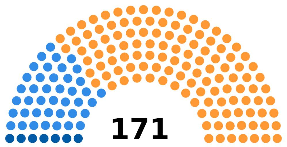 Keywords: South African House of Assembly 1974.svg 005BA6 Progressive Party 7 seats 318CE7 United Party 41 seats FF9933 National Party 123 seats 2016-02-05 own MB298 other versions cc-zero Election apportionment diagrams of South Africa