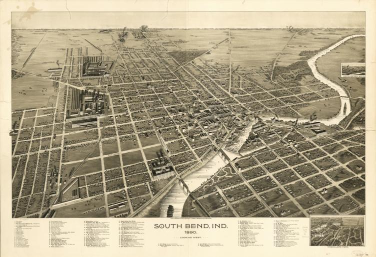 Keywords: South-Bend-1890.gif Bird's eye view of South Bend Indiana in 1890 Library of Congress C J Paulie PD-old South Bend Indiana