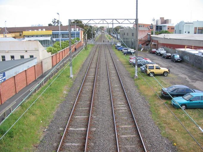 | Keywords: South from Phoenix Street Bridge, Brunswick.jpg The view south from Phoenix Street pedestrian overpass Brunswick Victoria Australia The former Hoffman Brickworks siding passed through where the cars are parked in this photo Photos taken by Cnwb Brunswick Victoria Upfield railway line 2006-10-27 own assumed Cnwb~commonswiki |