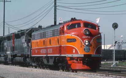 <b> A Roger Puta Photograph</b> southernpacific Southern Pacific Special - 19 Photos (30641255990).jpg en Roger Puta took this photo in Oakland CA <br> The Southern Pacific ran two passenger specials from San Jose to Sacramento and return on the weekend of April 27 and 28 1985 One on each day On Sunday 6051 remained in Sacramento to become an artifact at the California State Railroad Museum I'm pretty sure Roger shot the Saturday morning train to Sacramento He put no captions on these slides Some of the locations have been positively identified by landmarks A few are a little soft <br> The power was E9A 6051 and commuter SDP45s 3201 and 3207 <br> <b> A Roger Puta Photograph</b> 2016-11-12 13 38 33 https //www flickr com/people/129679309 N05 railfan 44 https //www flickr com/photos/129679309 N05/30641255990/ User Fæ/Flickr API Puta's Southern Pacific Employee's Special April 1985 Puta's UP and pre-Union Pacific Photos train railroad railfans fallen flags United States Locomotive Photographers Western Railroads American Rails North American Railroads E-Units and F-Units Railroad Photographer USA/Canada Trains of the U S A U S Railfan Pictures All Locomotives Railroad Picture Hall of Fame Classic EMD Power EMD Gallery California Railfans Western US Railroad Photography Railroad Sightings Railroad Photography Junction Southern Pacific Cc-zero RogerPuta Photographs by Roger Puta Photos uploaded from Flickr by Fæ using a script 1985 in rail transport in the United States |