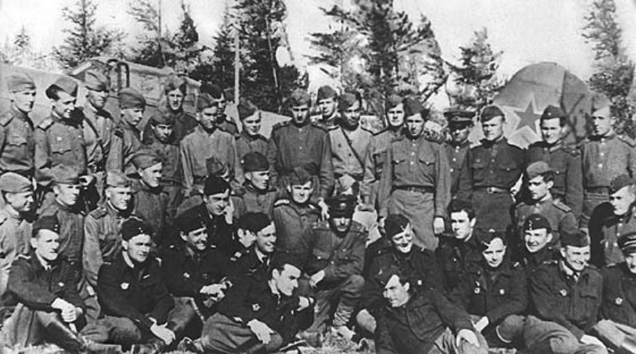 | Keywords: Sov-fr-pilots.jpg en The Normandie-Niemen Regiment airman with Soviet colleagues fr Des pilotes d'Normandie-Niemen avec des collègues soviétiques ru Летчики полка « о мандия- еман» с советскими коллегами uk Льотчики полку « о мандія- еман» з адянськими колегами 1943 http //www yak ru/FIRM/HISTMOD/ww2/nn php unkrown Custom license marker 2012 10 11 Uploaded with UploadWizard Normandie-Niemen Battles of the Eastern Front World War II Relations of France and Russia | ||||