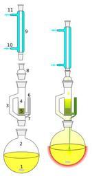 | Keywords: Soxhlet extractor.svg 1 Stirrer bar/anti-bumping granules 2 Still pot extraction pot - still pot should not be overfilled and the volume of solvent in the still pot should be 3 to 4 times the volume of the soxhlet chamber 3 Distillation path 4 Soxhlet Thimble 5 Extraction solid residue solid 6 Syphon arm inlet 7 Syphon arm outlet 8 Reduction adapter 9 Condenser 10 Cooling water in 11 Cooling water out Soxhlet extractor http //en wikipedia org/wiki/Soxhlet extractor 2006-10-27 Original PNG by Quantockgoblin SVG adaptation by Slashme Other versions left 65px svg version based on png version by Quantockgoblin - Soxhlet extractor Condensers chemistry laboratory equipment Laboratory distillation apparatus |