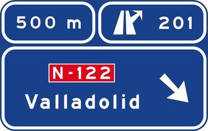 Keywords: Spain traffic signal s235.svg Preseñalización con señales sobre la calzada en autopista o autovía hacia cualquier carretera 2006-07-26 own assumed Benedicto16 ValidSVG Check categories 2009 May 2 es wikipedia Señales_de_tráfico_de_indicación Traffic sign 1 Diagrams of route signs of Spain Road signs in Spanish language