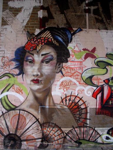 Keywords: spain vitoria-gasteiz graffiti painting art artistic artistry wall outside woman female flowers fan