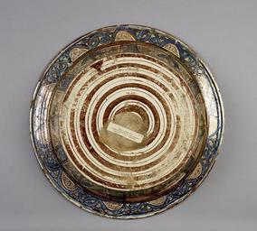 Keywords: Spanish - Basin - Walters 481013 - Bottom.jpg The art of making ceramic objects with luster decoration which has a metallic sheen probably began in 9th-century Iraq and spread throughout the Islamic world including to al-Andalus the Arabic name for Spain There large quantities of high quality lusterware were produced during the 14th and 15th centuries and influenced ceramic decoration well after the last Islamic dynasty in Spain came to an end in 1492 Often called Hispano-Moresque ware such pieces regularly feature foliage designs and inscriptions in pseudo-Arabic script as on this basin The basin's combination of luster designs with those painted in blue including two birds flanking a stylized tree is also typical of this ceramic tradition early-mid 15th century late Medieval earthenware with underglaze and luster decoration cm 11 49 6 accession number 48 1013 34987 Dikran Kelekian Paris and New York Henry Walters city Baltimore Walters Art Museum Henry Walters Acquired by Henry Walters 1925 place of origin Manises Spain Walters Art Museum license Medieval art in the Walters Art Museum Islamic art in the Walters Art Museum Spanish maiolica Media contributed by the Walters Art Museum needs category review |