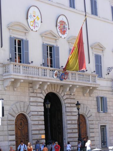 Keywords: Spanish embassy to the Holy See and the Sovereign Military Order of Malta.jpg Rome Spanish Embassy to the Holy See and the Sovereign Military Order of Malta Piazza di Spagna Embajada de España ante la Santa Sede que se encuentra en la Plaza de España own 2009-07-21 User Mattes 41 54 17 55 N 12 28 58 33 E zoom 20 See also <gallery> File Spanish Embassy to the Holy See - detail jpg Consulate </gallery> July 2009 Plaques of diplomatic missions of Spain Palazzo di Spagna Photographs of flags of Spain Signs in Rome Work by Mattes 2009 Taken with Fujifilm FinePix S5700 User Mattes/Contributions/Topics/Italy/Rome User Mattes/Contributions/Topics/banners coat of arms flags logos seals and signs User Mattes/Contributions/Topics/Buildings and structures User Mattes/Contributions/Topics/Diplomacy |