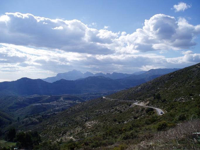 Keywords: spanish mountain road mountain road view vista clouds blue sky cloud skies mountains landscape