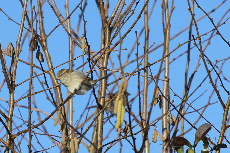 Keywords: sparrow bird branches sky blue