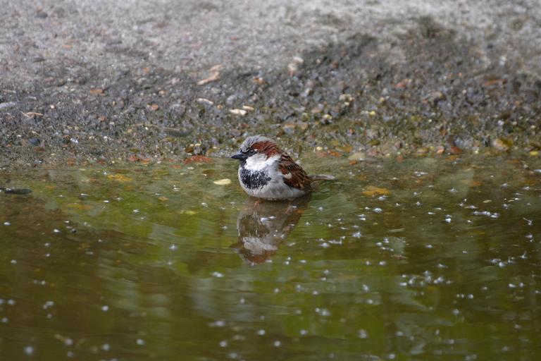 Keywords: sparrow little bird birds colorful small swim water