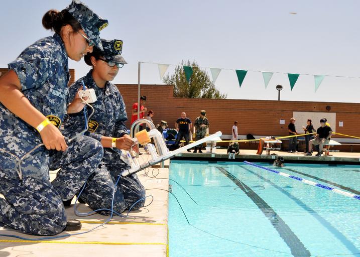 Keywords: SPAWAR supports SeaPerch San Diego STEM event 130427-N-UN340-002.jpg en Naval Sea Cadets prepare their SeaPerch Remotely Operated Vehicle ROV for the deep-water mission portion of the San Diego Regional SeaPerch Competition at Grossmont College SeaPerch sponsored by the Office of Naval Research is an innovative underwater robotics program that trains teachers to teach their late elementary through high school students how to build ROVs from low-cost kits Several Space and Naval Warfare Systems Command SPAWAR personnel volunteered as judges timekeepers and in-water assistants at the event As the Navy's Information Dominance Systems Command SPAWAR supports robotics development and strongly encourages all students to explore careers in science technology engineering and mathematics STEM fields U S Navy photo by Rick Naystatt/Released 2013-04-27 Rick Naystatt https //www dvidshub net/image/919363 130427-N-UN340-002 2013-05-01 12 11 SAN DIEGO CA US PD-USGov-Military-Navy Space and Naval Warfare Systems Command Office of Naval Research Images from DoD uploaded by Fæ |
