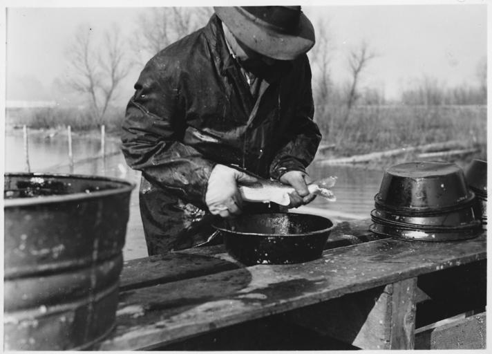 Keywords: Spawning operations featuring wall eyed pike - NARA - 285740.jpg Scope and content Showing a catch sorting culling and milking the male fish General notes 285740 Local identifier Department of the Interior Bureau of Indian Affairs Red Lake Agency 1964 NARA's Central Plains Region Kansas City NREA 400 West Pershing Road Kansas City MO 64108 1939 Record group Record Group 75 Records of the Bureau of Indian Affairs 1793 - 1999 Record group ARC 404 Red Lake Agency Photographs compiled 1910 - 1965 Series ARC 285700 File unit File unit ARC Variant control numbers NAIL Control Number NRE-75-RL PHO -908 Other versions <gallery> File Spawning_operations_featuring_wall_eyed_pike_-_NARA_-_285740 tif tif File Spawning_operations_featuring_wall_eyed_pike_-_NARA_-_285740 jpg jpg </gallery> NARA-cooperation PD-USGov People with fish |