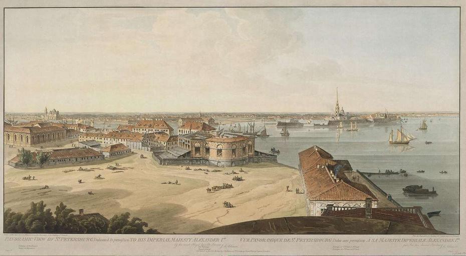 | Keywords: SPB Panoramic view on Spit of the Vasilievsky Island by Atkinson 1805-1807.jpg Panoramic view on Spit of the Vasilievsky Island in St Petersburg dedicated by permission to his Imperial Majesty Alexander 1st by his much obliged humble servant J A Atkinson / drawn on the spot by J A Atkinson from the observatory of the Academy of Sciences 1805-1807 Caption Plate 4th Exchange et Warehouse New Exchange Fortress of St Peter et St Paul Пано амный вид ст елки Васильевского ост ова в С -Пете бу ге выполненный Дж А Аткинсоном в пе иод 1805-1807 гг Подпись англ ф Лист 4 Би жа и склад овая би жа К епость св Пет а и св Павла John Augustus Atkinson 1775-ca 1833 1805-1807 Госуда ственный Э митаж Saint Petersburg http //community livejournal com/retro_piter/262546 html PD-old-100 Other versions Panorama of Saint Petersburg by John Augustus Atkinson 1805-1807 Neva River Old views of Spit of the Vasilievsky Island Old Saint Petersburg Stock Exchange Peter Paul Fortress in art Historical images of Peter Paul Fortress Landscape paintings in the Hermitage Prints in the Hermitage |