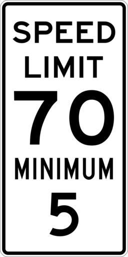 Keywords: Speed Limit 70 Minimum 5 sign.svg 600 mm by 1200 mm 24 in by 48 in Combined Speed Limit sign made to the specifications of the http //mutcd fhwa dot gov/SHSm/regulatory pdf 2004 edition of Standard Highway Signs sign R2-4a Uses the http //www triskele com/fonts/index html Roadgeek 2005 fonts United States law does not permit the copyrighting of typeface designs and the fonts are meant to be copies of a U S Government-produced work anyway The outside border has a width of 1 1 mm and a color of black so it shows up; in reality signs have no outside border own Ltljltlj User Ltljltlj/Template minimum R2-4 - Minimum Speed 7005 70 number 5 number |