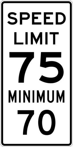 | Keywords: Speed Limit 75 Minimum 70 sign.svg 600 mm by 1200 mm 24 in by 48 in Combined Speed Limit sign made to the specifications of the http //mutcd fhwa dot gov/SHSm/regulatory pdf 2004 edition of Standard Highway Signs sign R2-4a Uses the http //www triskele com/fonts/index html Roadgeek 2005 fonts United States law does not permit the copyrighting of typeface designs and the fonts are meant to be copies of a U S Government-produced work anyway The outside border has a width of 1 1 mm and a color of black so it shows up; in reality signs have no outside border own Ltljltlj User Ltljltlj/Template minimum R2-4 - Minimum Speed 7570 70 number 75 number |
