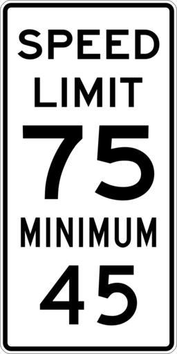 | Keywords: Speed Limit 75 Minimum 45 sign.svg 600 mm by 1200 mm 24 in by 48 in Combined Speed Limit sign made to the specifications of the http //mutcd fhwa dot gov/SHSm/regulatory pdf 2004 edition of Standard Highway Signs sign R2-4a Uses the http //www triskele com/fonts/index html Roadgeek 2005 fonts United States law does not permit the copyrighting of typeface designs and the fonts are meant to be copies of a U S Government-produced work anyway The outside border has a width of 1 1 mm and a color of black so it shows up; in reality signs have no outside border own Ltljltlj User Ltljltlj/Template minimum R2-4 - Minimum Speed 7545 75 number 45 number |