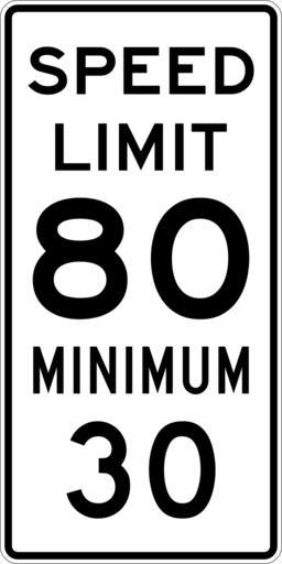 | Keywords: Speed Limit 80 Minimum 30 sign.svg 600 mm by 1200 mm 24 in by 48 in Combined Speed Limit sign made to the specifications of the http //mutcd fhwa dot gov/SHSm/regulatory pdf 2004 edition of Standard Highway Signs sign R2-4a Uses the http //www triskele com/fonts/index html Roadgeek 2005 fonts United States law does not permit the copyrighting of typeface designs and the fonts are meant to be copies of a U S Government-produced work anyway The outside border has a width of 1 1 mm and a color of black so it shows up; in reality signs have no outside border own Ltljltlj User Ltljltlj/Template minimum R2-4 - Minimum Speed 8030 30 number 80 number |