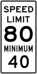 | Keywords: Speed Limit 80 Minimum 40 sign.svg 600 mm by 1200 mm 24 in by 48 in Combined Speed Limit sign made to the specifications of the http //mutcd fhwa dot gov/SHSm/regulatory pdf 2004 edition of Standard Highway Signs sign R2-4a Uses the http //www triskele com/fonts/index html Roadgeek 2005 fonts United States law does not permit the copyrighting of typeface designs and the fonts are meant to be copies of a U S Government-produced work anyway The outside border has a width of 1 1 mm and a color of black so it shows up; in reality signs have no outside border own Ltljltlj User Ltljltlj/Template minimum R2-4 - Minimum Speed 8040 40 number 80 number |