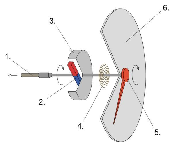 | Keywords: Speedometer diagram.svg en Diagram of traditional eddy current speedometer 1 Rotating cable from vehicle's transmission 2 Rotating magnet 3 Speedcup 4 Torsion spring 5 Pointer 6 Dial fi Perinteisen nopeusmittarin toiminta 1 Pyörivä kaapeli ajoneuvon akselilta 2 Pyörivä magneetti 3 Alumiinikuppi 4 Palautusjousi 5 Osoitin 6 Mittaritaulu 2014-03-26 15 04 57 own Jam123 cc-zero Uploaded with UploadWizard Speed measurement | ||||
