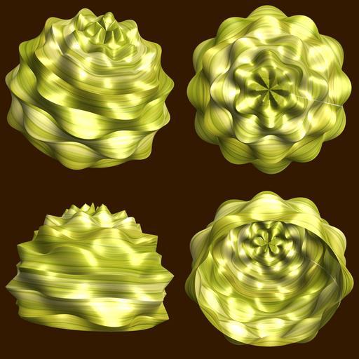| Keywords: mathematica cg 3d sphericalplot3d texture code program algorithm コード プログラム アルゴリズム geometric sculpture geometricsculpture shape geometry sculpture mapping テクスチャ マッピング 模様 もよう abstract 抽象 ちゅうしょう アブストラクト design pattern デザイン パターン graphic グラフィック グラフィクス structure 意匠 構造 symmetry 対称性 たいしょうせい シンメトリー 対称 たいしょう algorithm コード indoor black background a = 3; b = 2; c = 6; SetOptions[SphericalPlot3D, Axes -> None, Mesh -> None, Boxed -> False, PlotStyle -> Directive[Specularity[White, 30], Texture[Import["D:/tmp/71.jpg"]]], TextureCoordinateFunction -> ({b #4, #5/c} &), Lighting -> "Neutral", Background -> Darker[Orange, 0.8], ImageSize -> 3000, PlotPoints -> 400]; f[v_] := TriangleWave[{-1, 1}, v] / 3; SphericalPlot3D[a + f[b p] Sin[c q], {p, 0, 2}, {q, 0, 2 Pi}] (*--- The Texture *) a = 3; b = 2; c = 6; SetOptions[SphericalPlot3D, Axes -> None, Mesh -> None, Boxed -> False, PlotStyle -> Directive[Specularity[White, 30], Texture[Import["D:/tmp/71.jpg"]]], TextureCoordinateFunction -> ({b #4, #5/c} &), Lighting -> "Neutral", Background -> Darker[Orange, 0.8], ImageSize -> 3000, PlotPoints -> 400]; f[v_] := TriangleWave[{-1, 1}, v] / 3; SphericalPlot3D[a + f[b p] Sin[c q], {p, 0, 2}, {q, 0, 2 Pi}] (*--- The Texture *) |