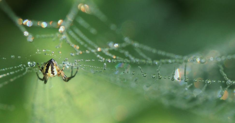 Keywords: spider insect close nature cobweb perspective morgentau small spider network sparkle lichtspiel arachnid insect macro prey dewdrop drip beaded