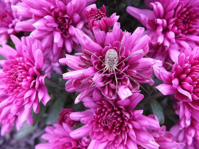Keywords: spider insect nature arachnid bug scary wildlife animal flower mum purple