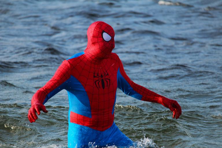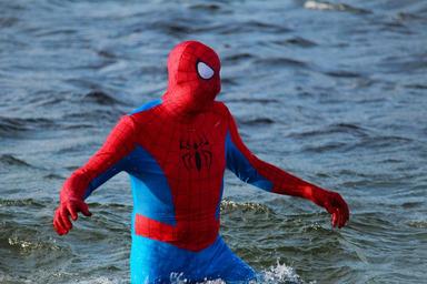 Keywords: spiderman person man male guy water kelowna polarbearswim okanagan bc britishcolumbia canada