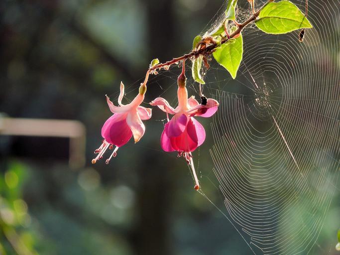 Keywords: spider web flower fuchsia rose web nature