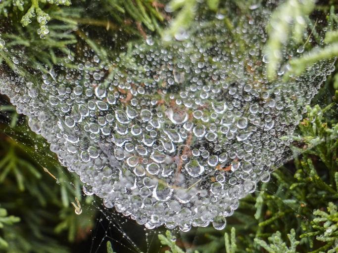 Keywords: spider web heavy rain loaded spider net nature water early morning close up macro natural wildness