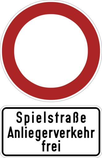 | Keywords: Spielstraße - Bild 11 mit Zusatztafel - Zeichenkombination wie sie bereits Ende der 1960er Jahre in Westdeutschland eingesetzt wurde.svg  de Spielstraße Bild 11 mit Zusatztafel Eine Zeichenkombination wie sie bereits Ende der 1960er Jahre in Westdeutschland eingesetzt wurde Die Zeichen stammen aus der Zeit vor Einführung der StVO 1970 und halten sich gestalterisch an die Vorgaben der StVO von 1956 Nachgezeichnet nach einem entzerrten Foto aus dem Jahr 1970 Für den Rotton wurde von den Behörden das RAL-Farbtonregister 840 R gewählt Der dort verzeichnete Rotton RAL 3000 ist in der Abbildung wiedergegeben own Mediatus 03 November 2013 Herstellungsdatum + Signs <gallery> Spielstraße - Zeichen 250 mit Zusatzzeichen - diese Zeichenkombination wurde mit Einführung der StVO von 1970 in Westdeutschland gültig svg </gallery> User Mediatus/no-new-version Cc-zero PD-VzKat German language signs SVG road signs in Germany Diagrams of road sign assemblies of Germany 1956 set |