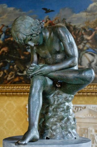 | Keywords: Spinario Musei Capitolini MC1186.jpg The Spinario or Thorn-Puller Greek artwork of the Late Helelnistic era after classical and hellenistic models Le Tireur d'épine Œuvre grec hellénistique tardif d'après des modèles classiques et hellénistiques Il Spinario Opera romana del età tarda-ellenistica dai modelli classici e ellenistici century 1 BC bronze H 73 cm 28 ½ in Museum Musei Capitolini Palazzo dei Conservatori Hall of the Triumphs object history credit line Formerly in the Lateran; gift of Sixtus IV 1471 Provient du palais du Latran don de Sixte IV en 1471 Già al Laterano; dono di Sisto IV 1471 accession number MC 1186 Marie-Lan Nguyen 2009 other versions The Capitoline Spinario |