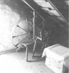 MAKE A MEME View Large Image Old spinning wheel in attic. Robert Garber farm. Citation: Mennonite Community Photograph Collection, 1947-1953. Furniture. HM4-134 Box 1 Photo 139-1. Mennonite Church USA Archives - Goshen. Goshen, Indiana. Caption: August, 1947. Mt. Joy, ...