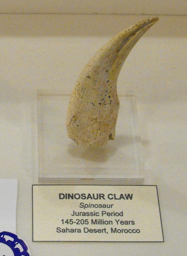 Keywords: Spinosaurclaw.jpg en Fossil spinosaur claw on display at the San Diego County Fair California USA Own Stickpen 2009-06-29 released to public domain Spinosauridae fossils Claws