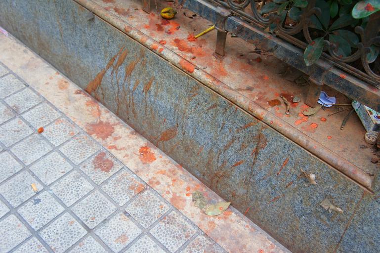 | Keywords: Spit from chewing Areca nut.jpg en Spit from a chewing Areca nut commonly known as betel nut This photo was taken in Haikou Hainan China 2011-02-11 own Anna Frodesiak Cc-zero Uploaded with UploadWizard Paan in China Files by User Anna Frodesiak |