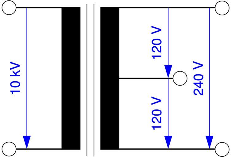Keywords: Split phase.svg Visualization of a split phase transformer selfmade using XFig 2008-09-06 Lars H Rohwedder User RokerHRO SVG electrical symbols SVG ” Electric power